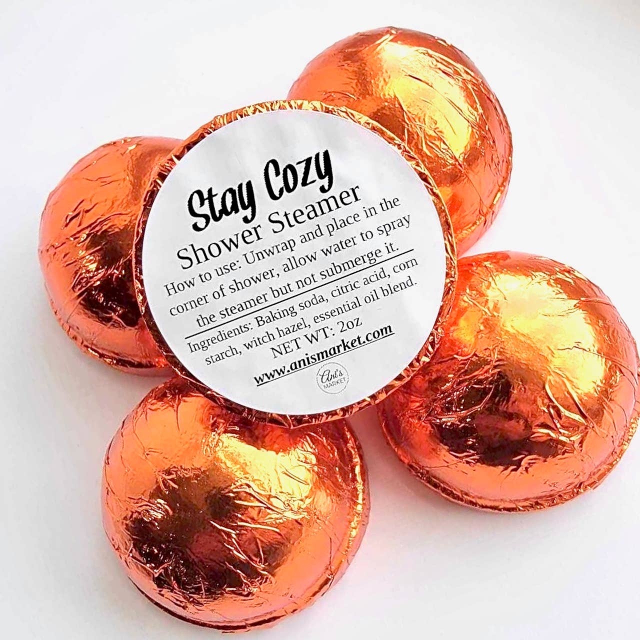 LIMITED EDITION Stay cozy shower steamer! Start the morning in a calm and inviting mood with this perfectly comforting and delicious blend of cinnamon bark, sweet orange and a touch of vanilla. Each steamer lasts 1-4 showers when placed in the back corner of the shower.
