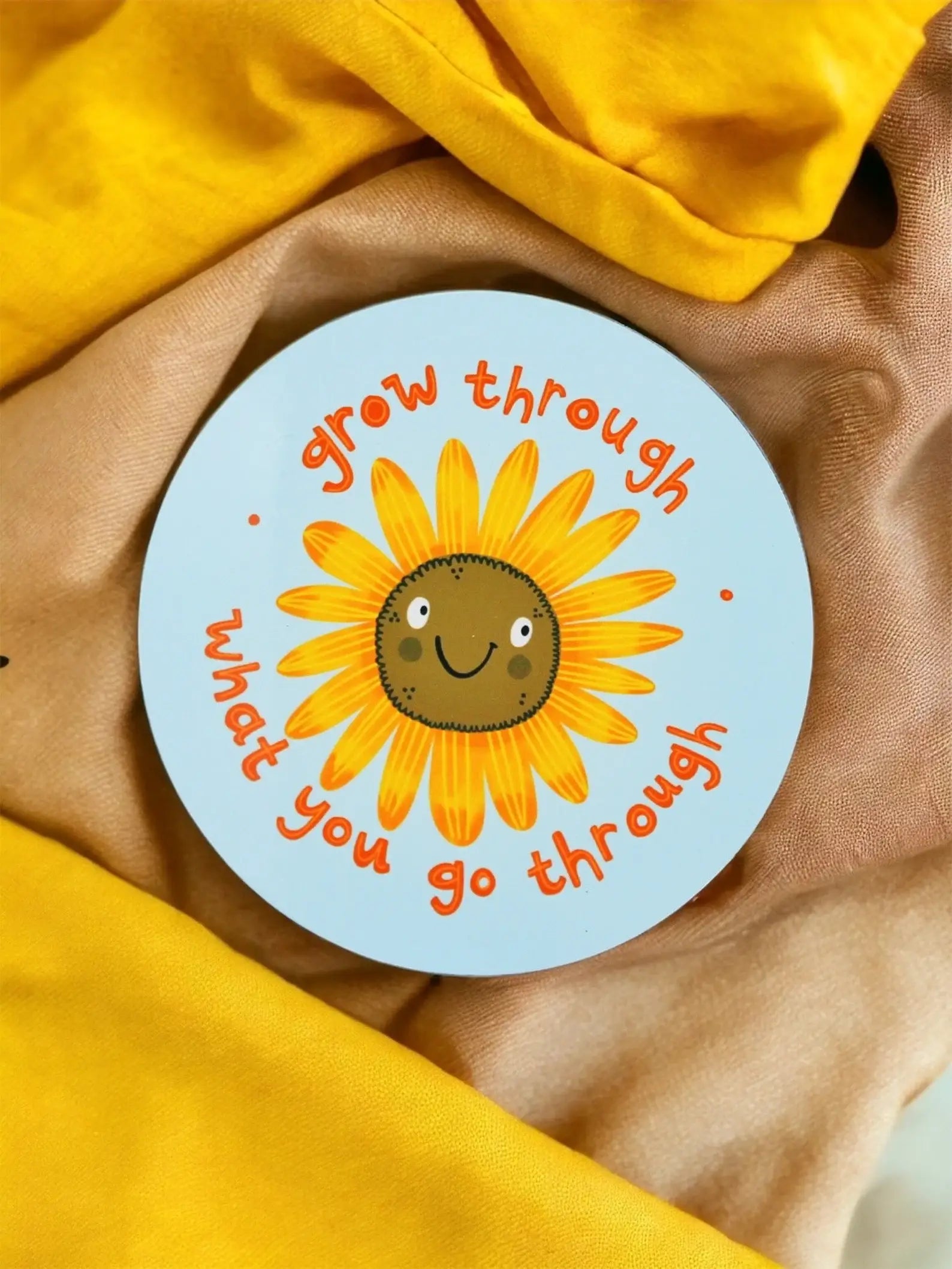 Round Sunflower Coaster, “Grow through what you go through” making anyone smile, even on the darkest of days. The coaster measures 90mm x 90mm and will fit a standard mug on top.