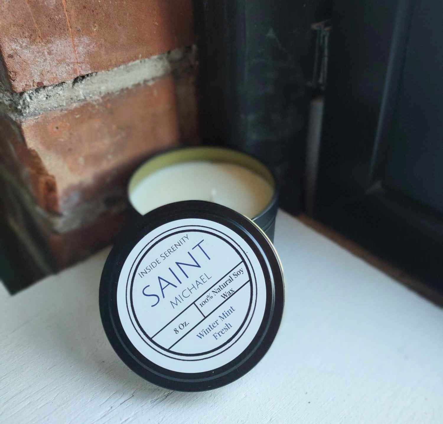 Introducing our Saint Michael Soy Wax Candle, handcrafted with a Clean Winter Mint Scent. This Natural Soy wax Candle is made to capture the essence of refined masculinity and invigorating freshness.